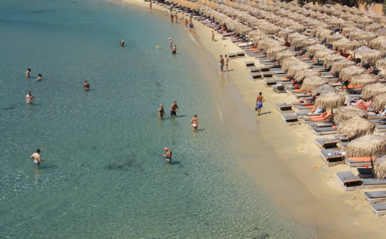 Η παραλία Ελιά, με περιοχή για γυμνιστές προς την δεξιά πλευρά της, είναι μια απο τις gay favorite παραλίες του νησιού, (φυσικά και οι straight είναι ευπρόσδεκτοι). Ακολουθώντας ένα μικρό μονοπάτι προς την παραλία Αγράρι θα βρείτε επίσης άλλη μια μικρή όμορφη παραλία για γυμνιστές. Η παραλία Super Paradise απο την πλευρά του beach bar Jackie O' είναι δημοφιλής ανάμεσα στo gay & lesbian κοινό της Μυκόνου.