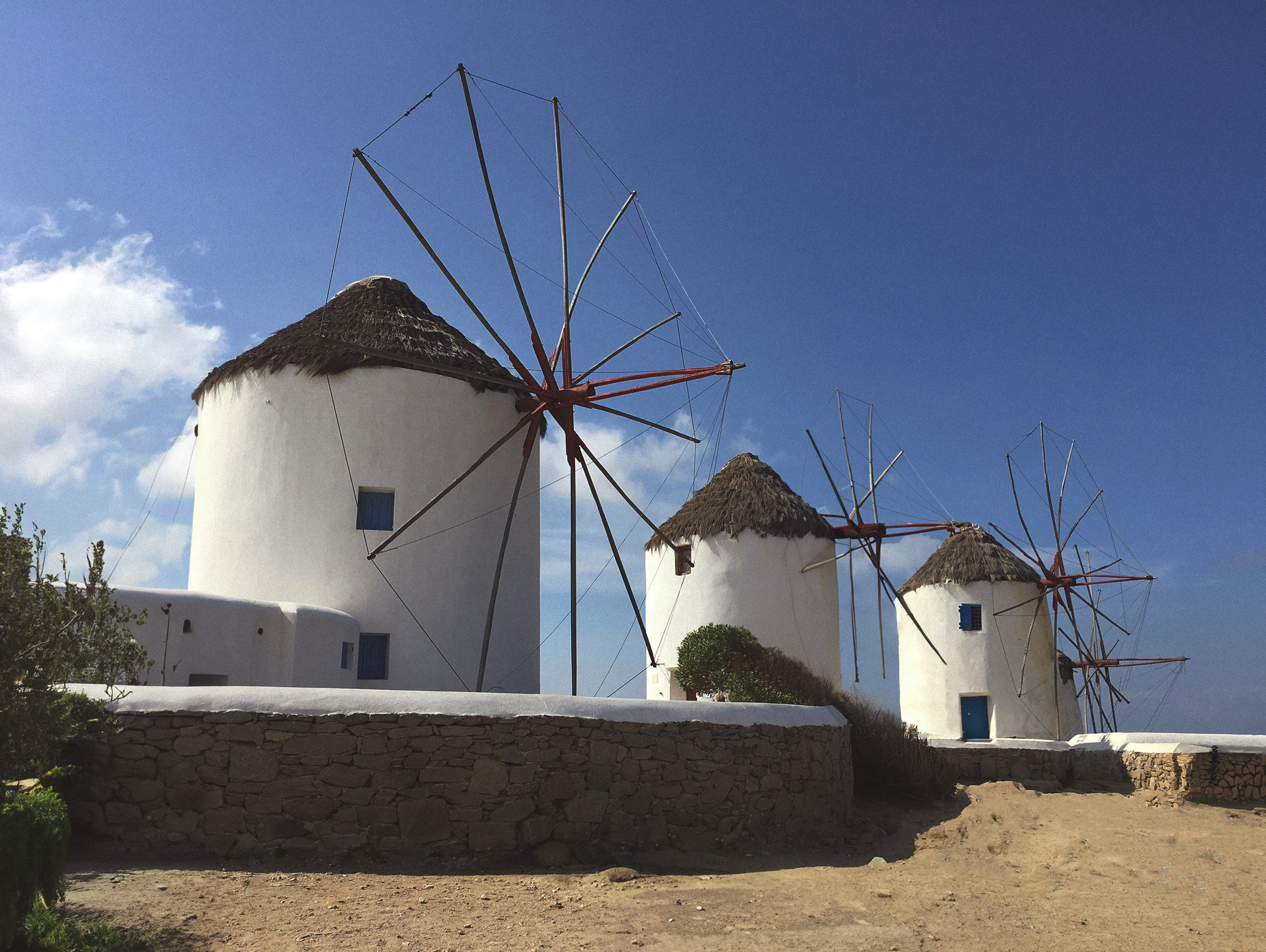 Αρχικά κτισμένοι από τους Βενετούς το 16ο αιώνα για να αλέθουν σιτάρι, οι ανεμόμυλοι της Μυκόνου αποτελούν το σήμα κατατεθέν του νησιού. Ασχέτως αν επισκέπτεστε τη Μύκονο για μια μέρα ή ένα μήνα, οι ανεμόμυλοι αποτελούν ίσως το πιο διάσημο αξιοθέατο του νησιού. Μη ξεχάσετε να έχετε τη φωτογραφική μηχανή μαζί σας, καθώς θα έχετε την ευκαιρία να θαυμάσετε τα γραφικά κτίρια της Μυκόνου.